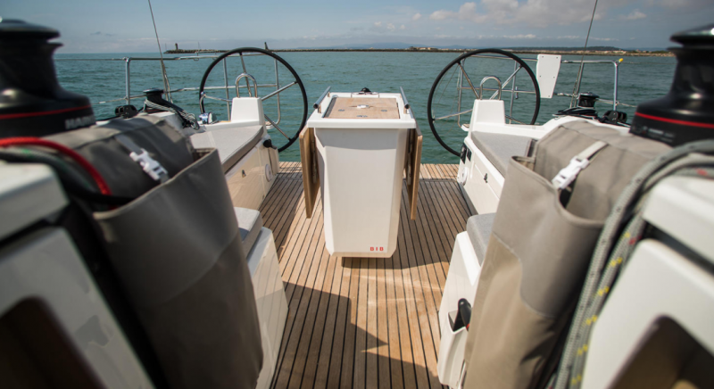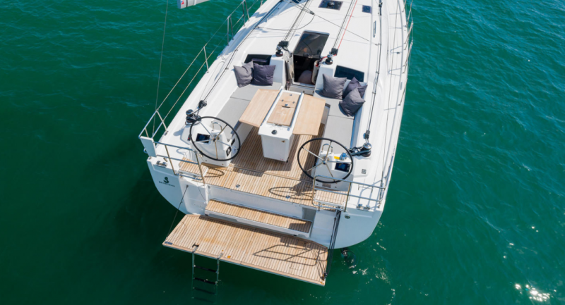 The ergonomics and easy movement in the cockpit make life on board so simple. Nothing interferes with the joy of life at anchor. Feel like splashing around the boat in an idyllic creek? The transom easily converts to an extensive swim platform, similar in size to the ones you find on the largest Oceanis cruising yachts. Having access to the sea is an integral part of life on a sailing yacht, and this one is a model of its kind.