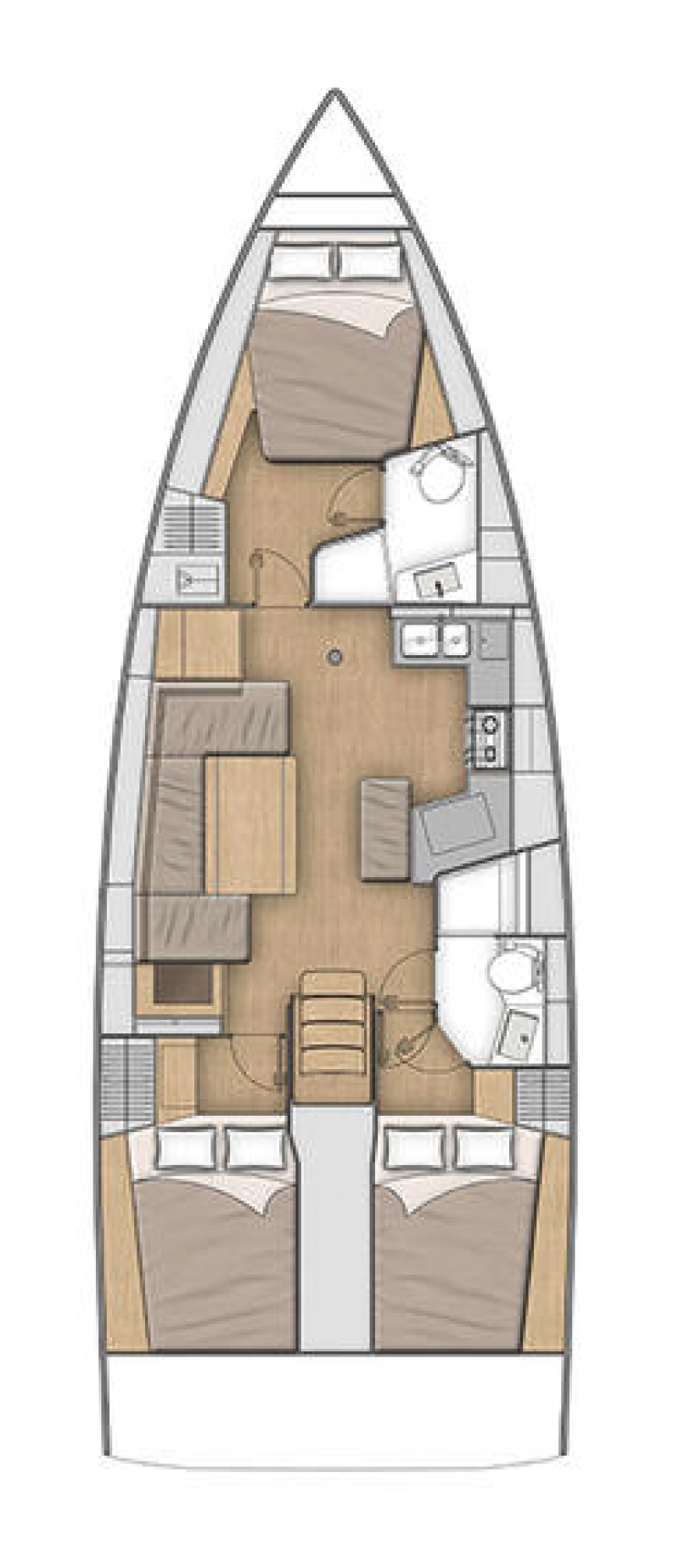 How can you enjoy life at anchor as much as sailing? With the innovative flared hull design of the Oceanis 40.1, and steps extending over a third of the bow, the result is a hull that has true speed potential and is stiff under sail. Above the waterline, her deck plan and ultra-spacious interior is unheard of on a boat this size. You cannot help feeling that you are aboard a 45 foot cruiser!