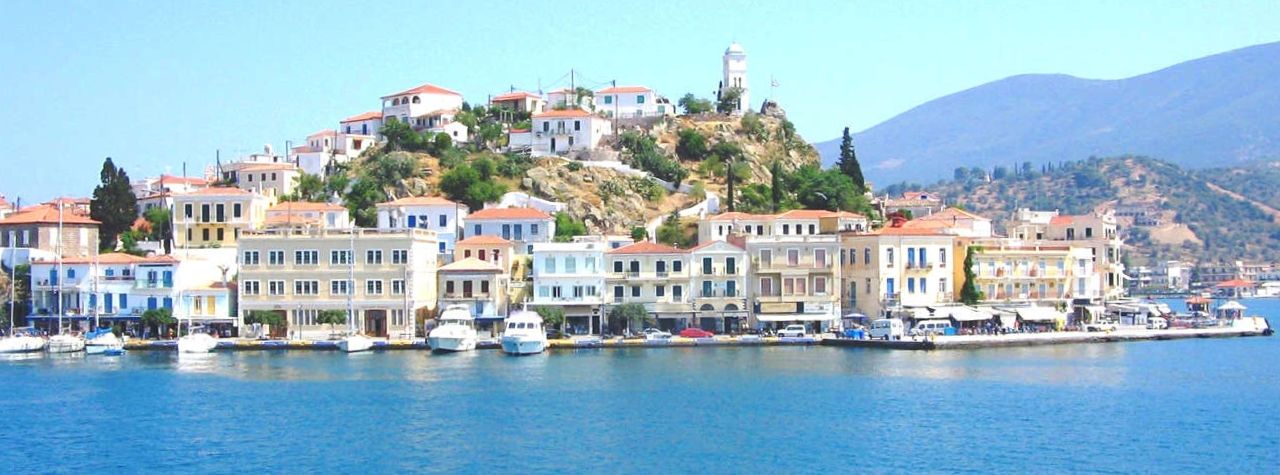 Rightfully famous for its picturesque port town and capital, built in the shape of an amphitheatre over two hills, its pine-covered slopes, its beautiful tiny bays and its small beaches with crystal clear waters, Poros exudes first and foremost elegance and calm. Begin by thoroughly exploring the town’s neoclassical buildings, narrow cobbled streets and small squares with stops at its small Archaeological, Folklore and Seashell museums. Make a point to visit Clock tower, a trademark of this maritime state since 1927. Built on the highest peak of the hill it provides a panoramic view of the small sea passage (200 meters at the closest point) from the opposite coast of the Peloponnese.